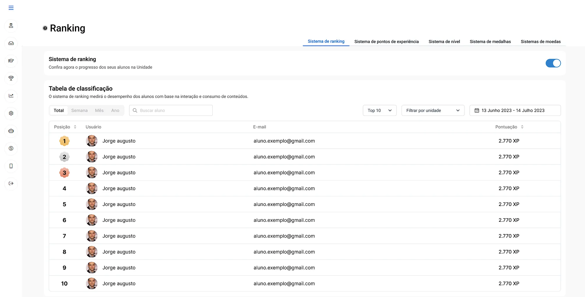 Students are ranked by their total accumulated experience points (XP). The more XP you earn, the higher your position in the ranking.